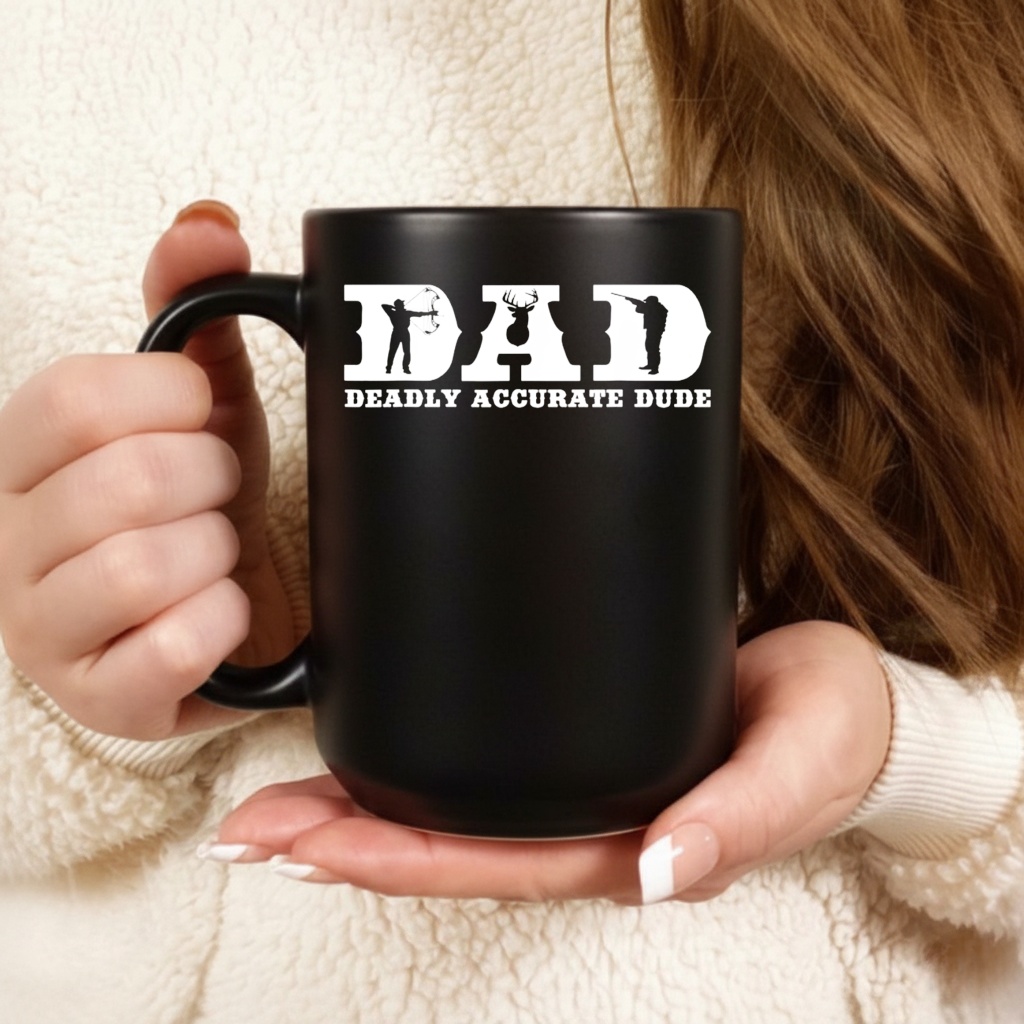 What does the acronym stand for? On this hunting dad shirt, DAD stands for “Deadly Accurate Dude,” a playful reference to his hunting skills.