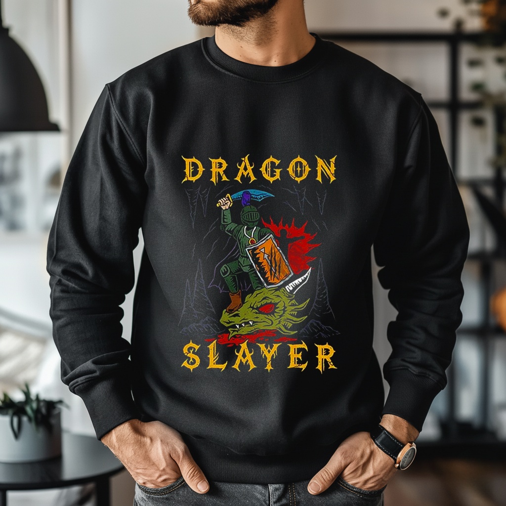 Roll for initiative. This epic fantasy tee features a classic warrior facing down a mythical beast, capturing the high-stakes thrill of tabletop campaigns and legendary folklore.